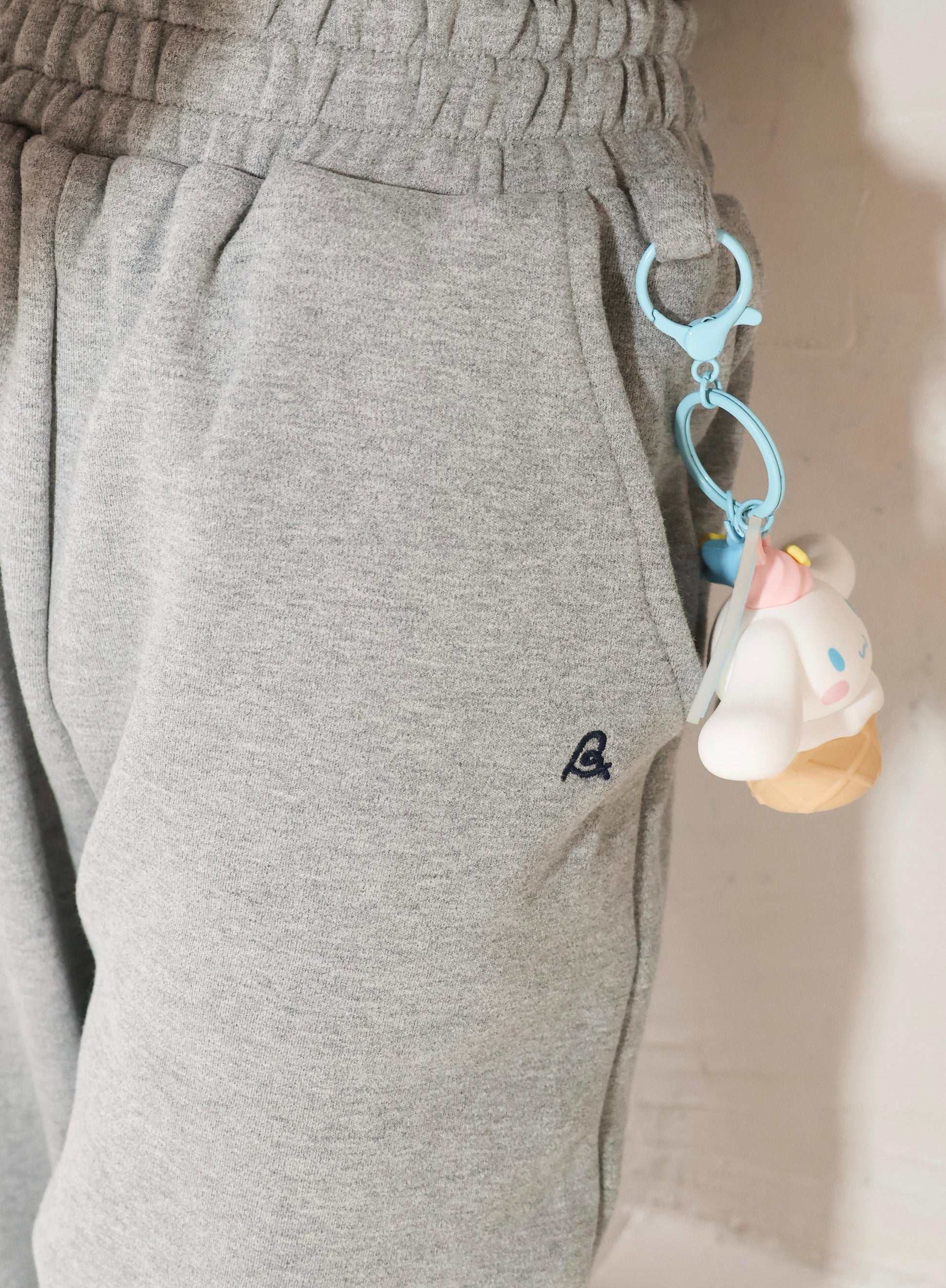 - Broek: Voorzien van een elastische tailleband zonder touwtjes, handige broekzakken en elastische enkelboorden. Naast een van de broekzakken zit een handig lusje, ideaal om een sleutelbos, je Labubu of een favoriete knuffel met een hanger aan vast te maken.